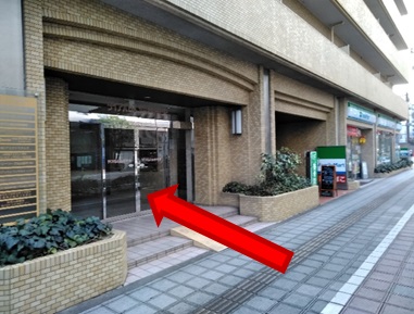 写真銀色の入口から入ってください。